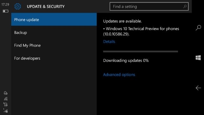 Windows Insideri u Fast Ringu sada mogu da instaliraju Windows 10 Mobile Technical Preview 10586.29, koji donosi ispravke bagova i sigurnosna ažuriranja. Novi build se karakteriše kao kumulativno ažuriranje za Windows 10 Mobile Insider Preview build 10586, koji je već dostupan Windows Insiderima u Fast i Slow Ringu.